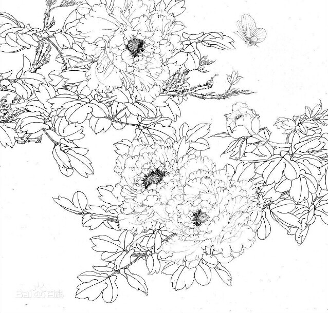 工笔白描就是完全用墨的线条来描绘对象,不涂颜色。白描本来大抵是用来打草稿的,宋代画家李公麟把它发展成独立的画种,他的白描如行云流水,变化无穷丰富,有很强的表现力。